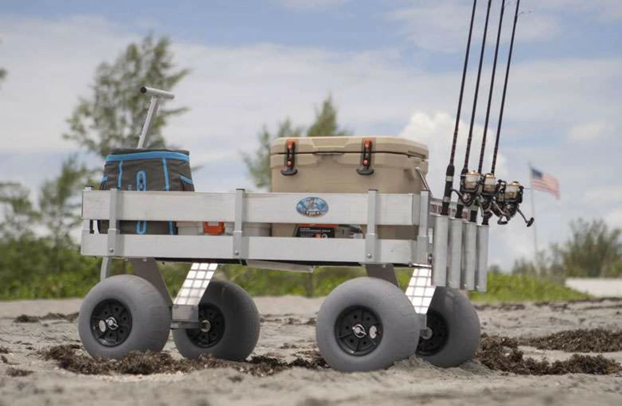 - (4)11.8” low PSI balloon tires. These low pressure sand tires make hauling your beach or fishing gear over the sand a breeze