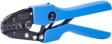 This tool includes a double crimp mechanism that crimps stranding and insulation portion of Ancor connectors in one motion for superior strain relief of vinyl and nylon terminals.