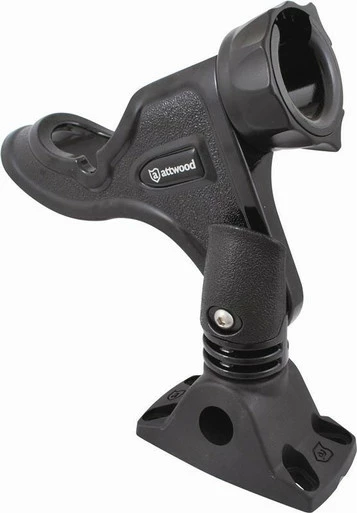 The Attwood 5010-4 Heavy Duty Pro Series Rod Holder with Combo Mount is designed for use with bait casting and spinning reels. Heavy-duty, deep-tooth gear lock holds the rod holder securely in the mounting base.