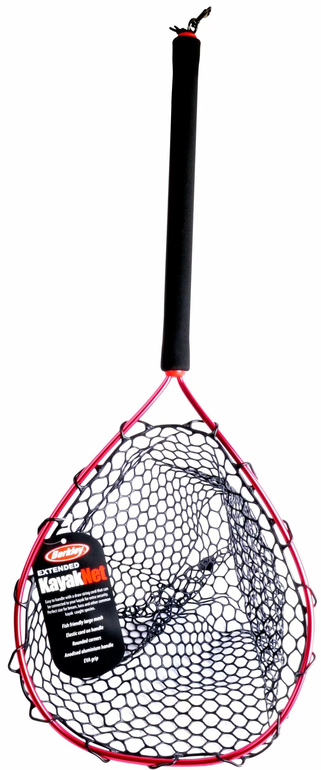 Berkley Extended kayak net – 35cm handle, elasticised cord with clip, silicone mesh, anodised.
