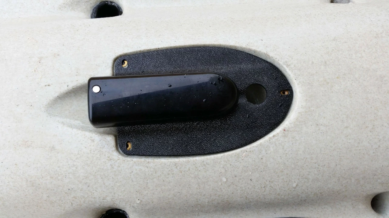 Side imaging requires the transducer to sit lower than the sides of the hull to not interfere with the image. The product image above shows a transducer mount sitting on a PA14. You can see that the height of the transducer sits at approximately the same height as the twin hull section at the rear. This extends below the hull on other Hobie models.