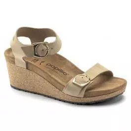 The Soley is a classic wedge heel sandal from Papillio. The Soley is the perfect combination of style and comfort, with its simple design and sleek heel strap. The delicate circular buckles are an elegant eye-catcher to dress up any outfit. The upper is made from high-quality, nubuck leather.