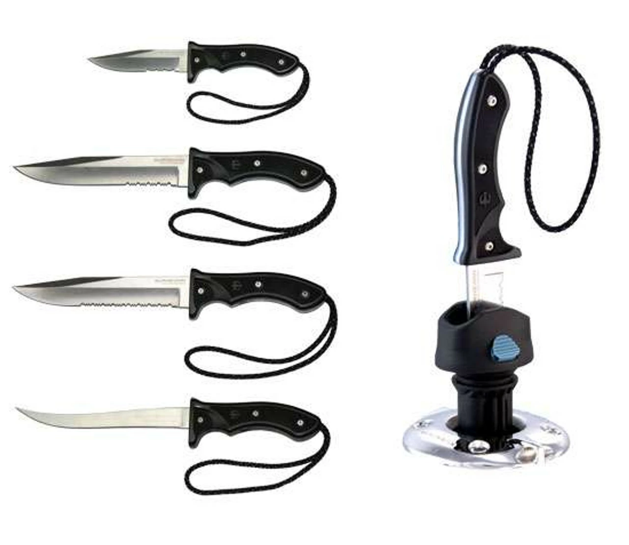 Burnewiin knives are handsome, traditional looking knives designed for boating and fishing. Each knife locks into a custom sheath and each sheath locks into both the GM400 and GM600 mounts. Just put the sheath?knife combination into the mount closest to the area you need a knife. The blades are made of the highest grade Japanese 420 J2 stainless steel for years of uncompromised use. The KN5610 5? Ocean Knife is the most functional for general use. The KN5650 7? Ocean Knife is just a larger version of the 5? for those who like a bit more steel. The KN5690 7? Bait Knife has serrations on almost the entire blade for sawing frozen bait or any tough job. The KN3610 7? fillet knife is a great fillet knife that may become your favorite accessory. Put a high quality Burnewiin knife right where you need it, when you need it.