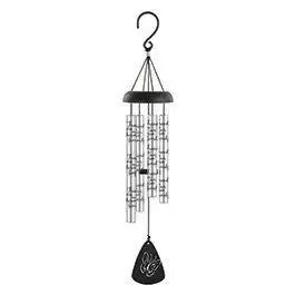 21″ sonnet chimes have 4 heavy walled, center pinned tubes that emit sweet gentle tones. All aluminum construction, durable powder coated and anodized finish, and strung with industrial cord. Each chime has an adjustable striker. Tubes are 3/4″ diameter, sentiment is printed directly onto the tubes.