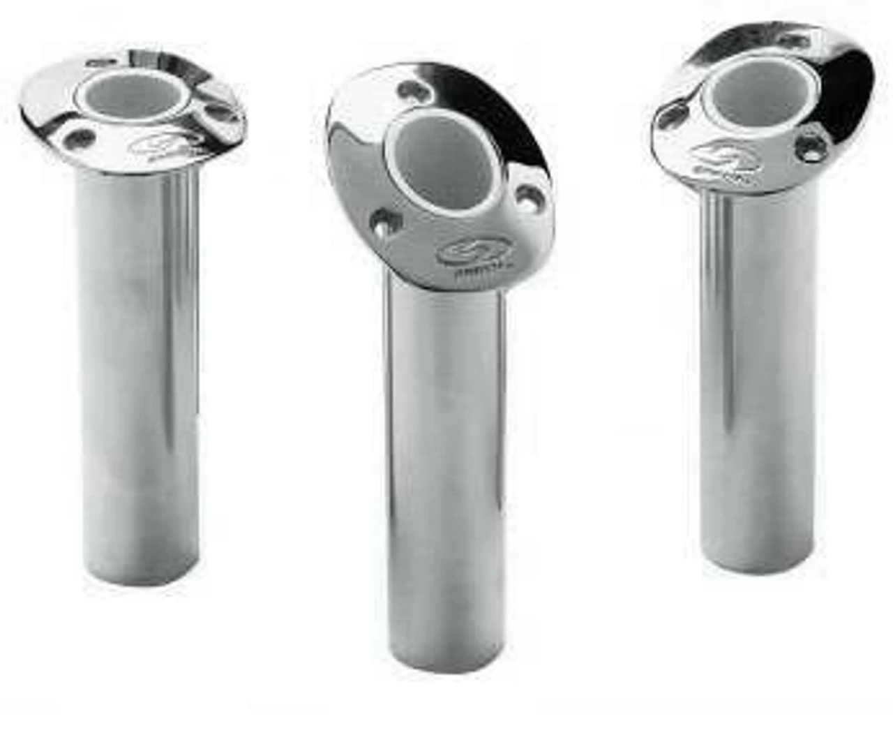 C.E. Smith Flush Mount Gunnel Rod Holders, made of 100% 316 stainless steel, feature an extra large, low profile cap to enhance the appearance of any boat. The 100% welded tube-to-cap joint is heavy-duty and will not break.