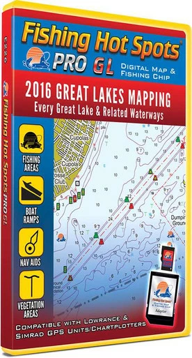The Fishing Hot Spots E226 PRO GL Digital Map provides All Great Lakes & Related Waterways Coverage for Simrad & Lowrance GPS Units/Chartplotters.