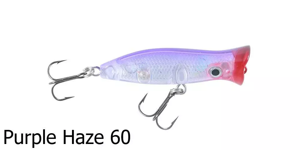 One size up from the RP 45, this Roosta Popper 60 has just that little bit more action for popping and blooping. It has many clear-bodied colour combinations to choose from, as well as the classic colours. A straight retrieve popper and blooper, the Roosta Popper 60 has a low splash, high bubble swimming action, and is an ideal size for targeting larger bream, jacks and bluebone.
