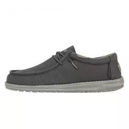 Comfort meets support in our bestselling design. Our Wally Washed collection features a classic moccasin construction with breathable stonewashed canvas for a lived-in look. Built on an ultralight outsole and finished off with our thoughtfully designed easy-on system, which features no-tie elastic laces and a cushioned ankle collar for support and extra comfort.Â