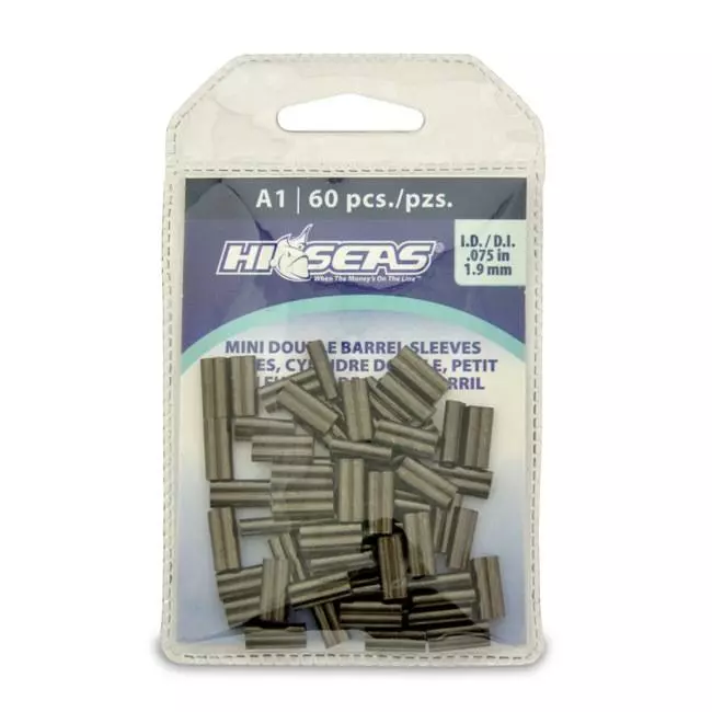 The HI-SEAS Mini Double Barrel Copper Sleeves are excellent for use with mono leader material, and can also be fitted to wire leader. Their burr-free, non-abrasive finish combined with their high strength capacity and corrosion resistance makes the HI-SEAS Mini Double Barrel Copper Sleeves the preferred choice for professional leader, lure, and tackle manufacturers
