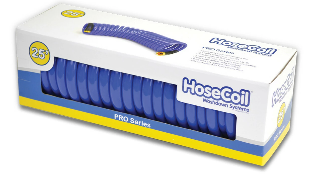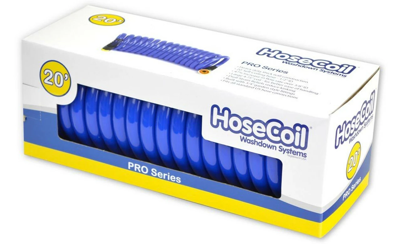 The HoseCoil PRO w/ Dual Flex Relief High Performance Hose provides a 47% increase in flow rate over 3/8” ID. This hose features a large 4.75” coil for better ease of handling and dual strain reliefs to reduce kinking. The HoseCoil PRO is not only larger in size, it is made with much thicker material for added strength and durability. Built with 3/4” garden style fittings, it fits all standard US hose connections.