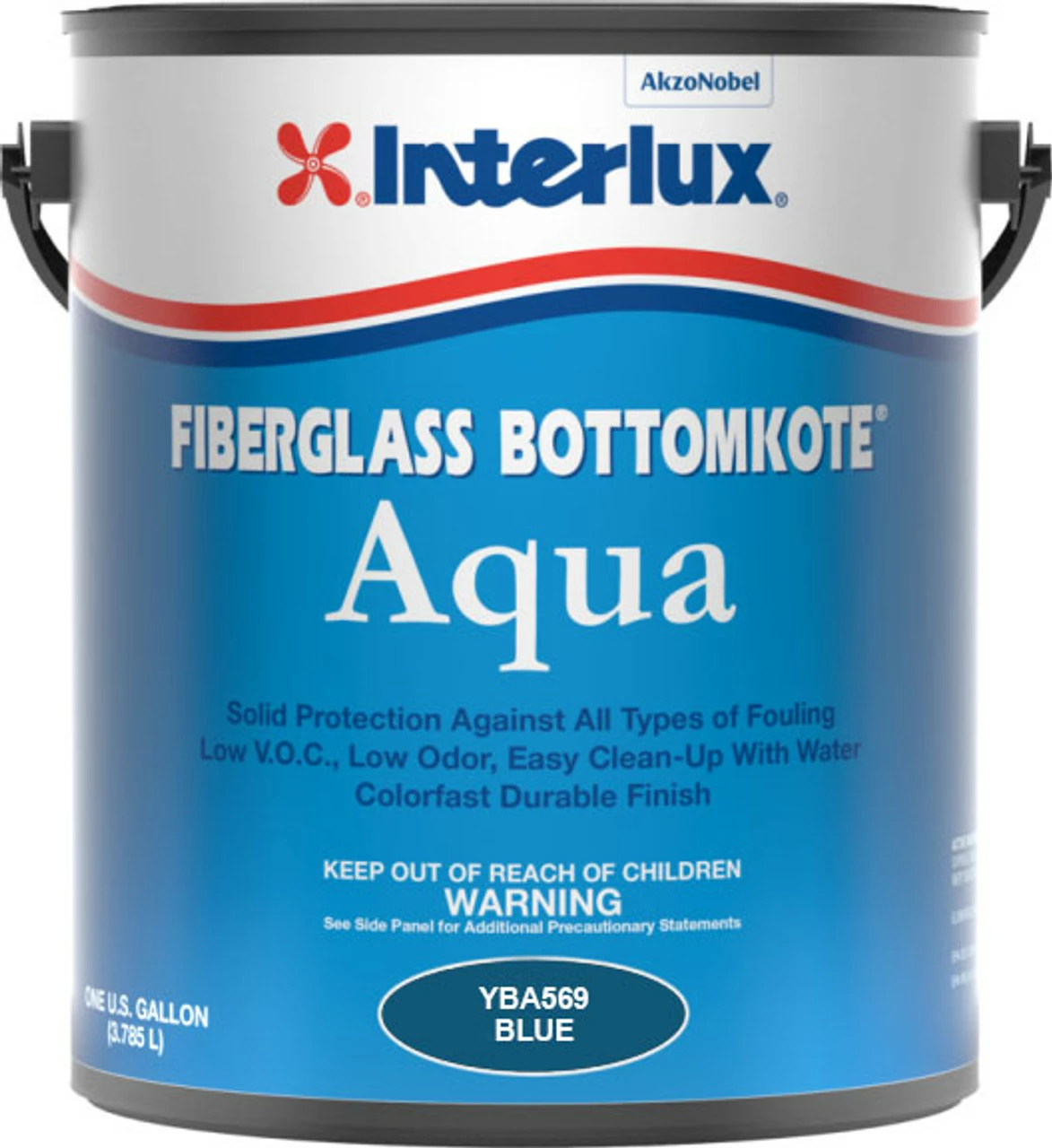 Interlux Fiberglass Bottomkote Aqua ? Waterbased, provides a colorfast, durable, low emissions finish that will provide premium protection from algae, slime, barnacles, zebra mussels and other forms of fouling. The low VOC, low odor formula of Fiberglass Bottomkote Aqua is fast drying and has the added benefit of easy clean up with soap and water.