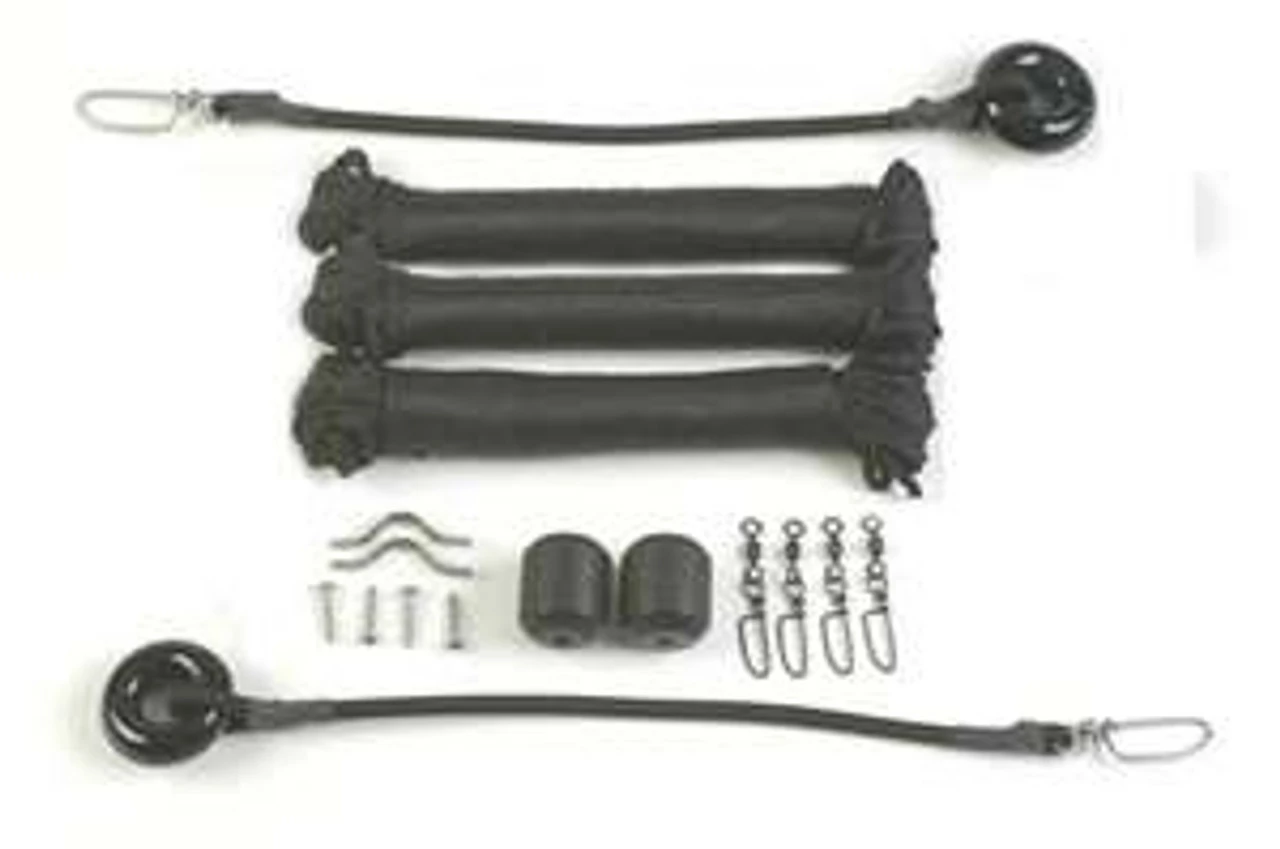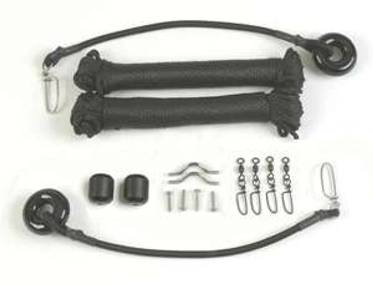 No matter what size outrigger you have, Lee’s has a rigging kit to suit your needs. From Single to Double Kits, we have it all. Products include Complete Kits, Line Kits, Release Clips and individual components. Line types include 400# test Black Braided Polyester as well as 400# test Black Monofilament. All Kits include Tension Cords, Eye Straps and Snap Swivels, and Ball Stops.