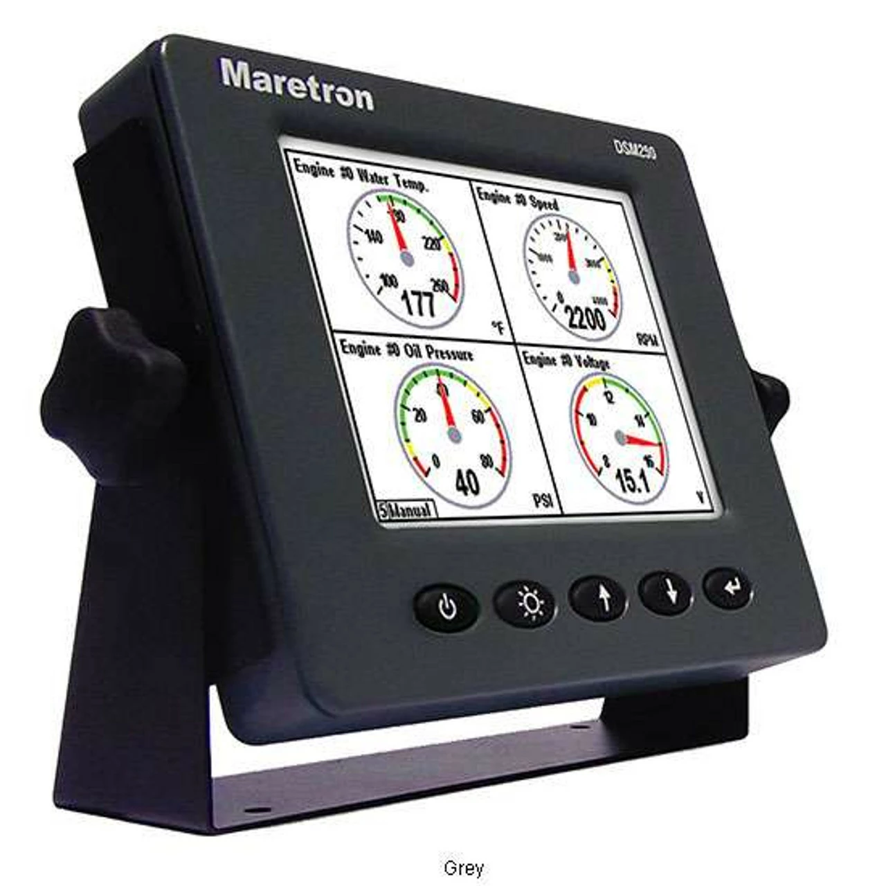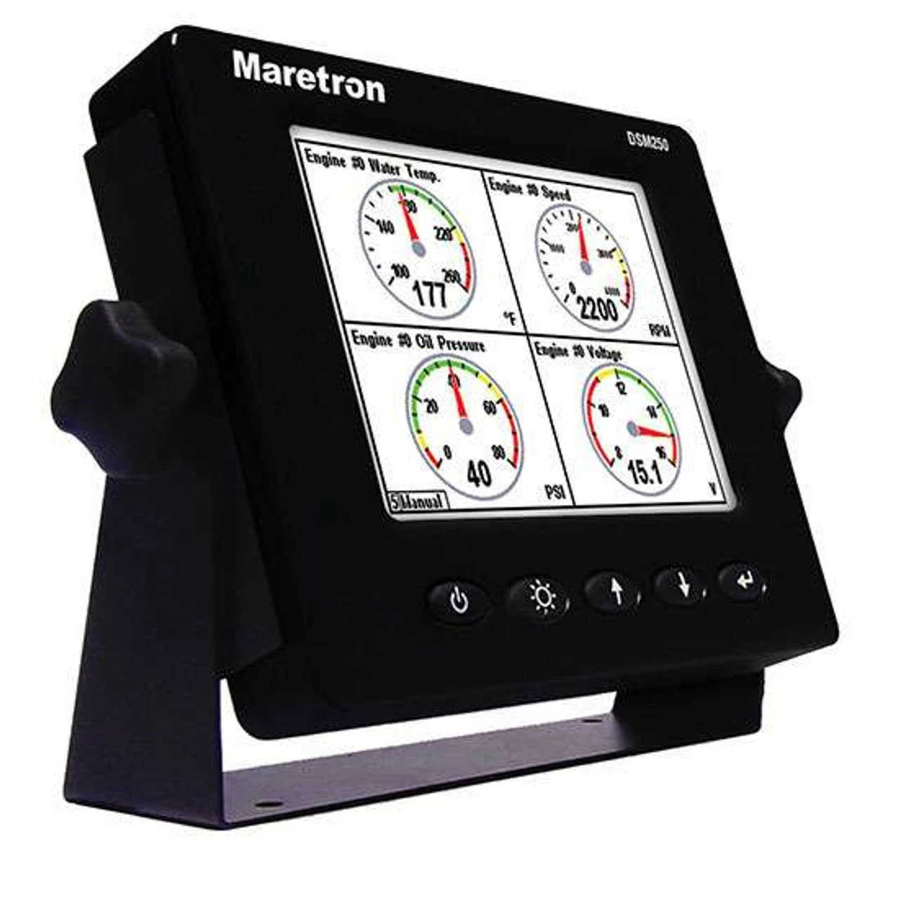 The Maretron DSM250 Multi-Function Color Display is a high-resolution sunlight viewable color display that allows easy interpretation of NMEA 2000 instrument and navigation data through custom display configurations, featuring an easy-to-use five-key illuminated keypad.