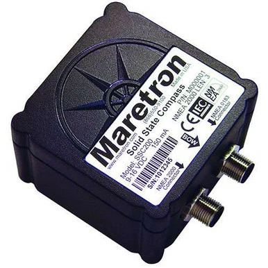 The Maretron SSC200 Solid State Compass is a solid state, rate gyro electronic compass that provides better than 1 degree heading accuracy through +/-45 degrees of roll and pitch angle, and better than 1 degree roll and pitch accuracy in static conditions. Each Maretron SSC200 is factory calibrated for maximum accuracy. It delivers precise, reliable heading information ten times per second, plus vessel attitude including pitch and roll readings once per second. A micromachined rate gyro is used by advanced stabilization algorithms to provide accurate, stable readings during dynamically changing conditions such as hard turns or rough seas, making it an ideal heading sensor for autopilot applications.