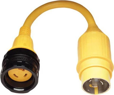 Marinco Pigtail Adapters allow you to connect from one dockside receptacle (or other power source receptacle) to one boat side inlet or equipment of a different power configuration. These adapters are fully molded and equipped with the Marinco unique sealing collar and covers for use in wet locations.