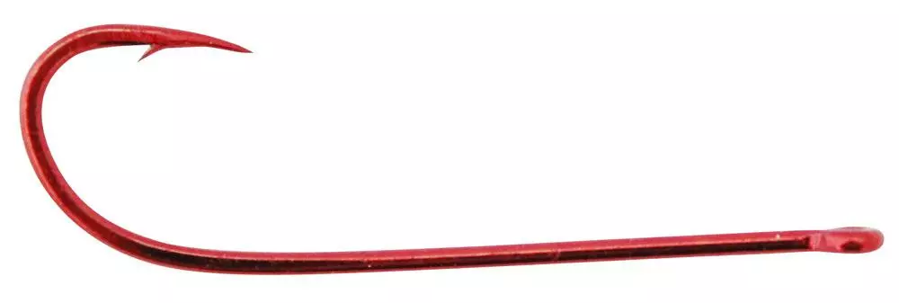 Coloured red to match the colour of most worms, the turned in hook point aids in hook setting while the extra long shank allows worms to be presented flat as well as making it easy to remove hooks
