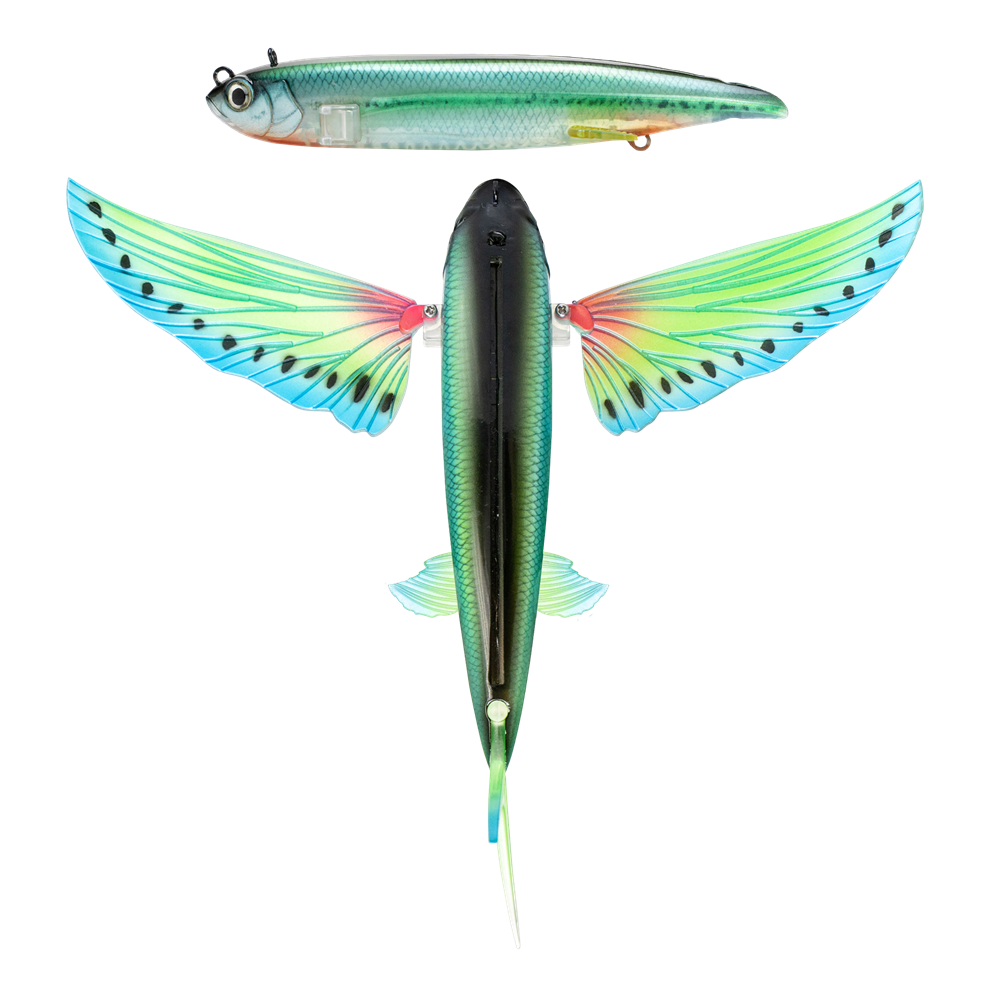 The Slipstream Flying Fish is a revolutionary heavy duty Hybrid lure that has been designed to perfectly mimic a flying fish in both appearance and action in the water. It is extremely versatile and can be cast, trolled or fished from a kite, with a huge variety of rigging options to suit your specific style of fishing.