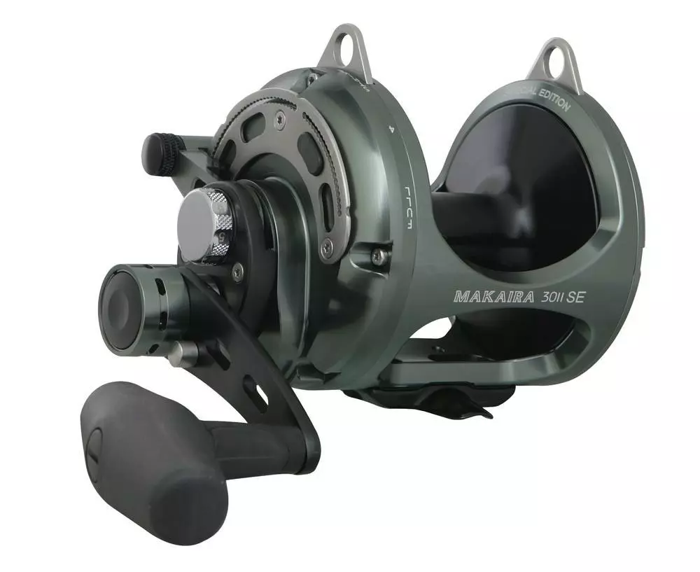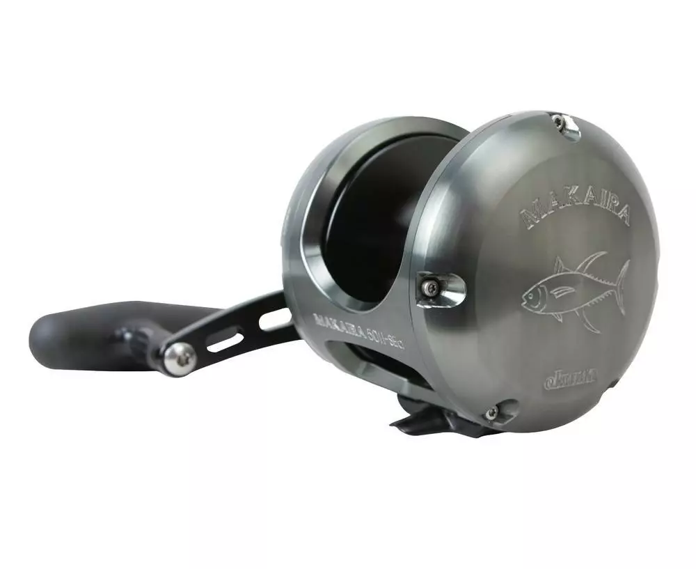Makaira SEa game reels are built using the same materials, standards and 4D system that have given the standard gold Makaira a reputation as a world class game reel. It’s not just the Special Edition Gun Smoke and Black anodising or yellowfin tuna etched into the sideplate that sets this reel apart though. Open spool bearings with TSI-301 oil increase the freespool by 2 ? times and when you switch to the lower speed on the 20, 30 and 50 you are geared lower than on the gold version, giving you additional grunt for hauling trophy fish from the depths. To back up this additional power the 20 and 30 size also come fitted with the MK-50 handle arm and knob. The Makaira SEa defines precision, performance and power. Game on!