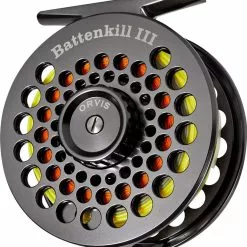 The Orvis Battenkill Disc Fly Reel features a new sealed multi-stacked drag system and is milled from aircraft aluminum. The sealed, carbon and stainless stacked drag system promotes excellent tension when battling hard-fighting fish. The black nickel anodizing, with a classic porting design, makes the Orvis Battenkill Disc Fly Reel look great with any rod.