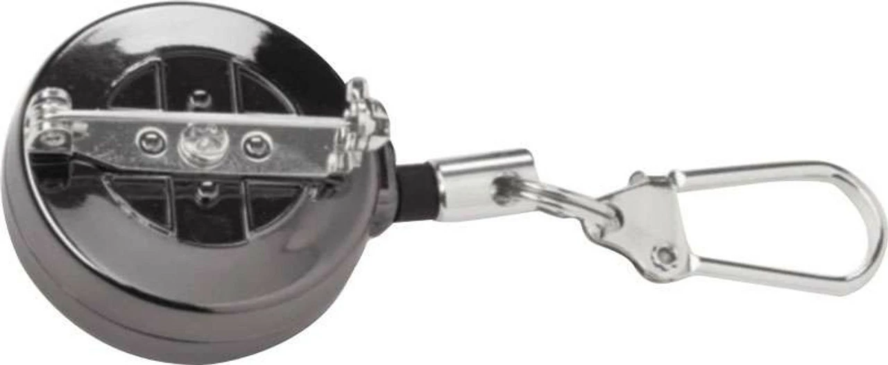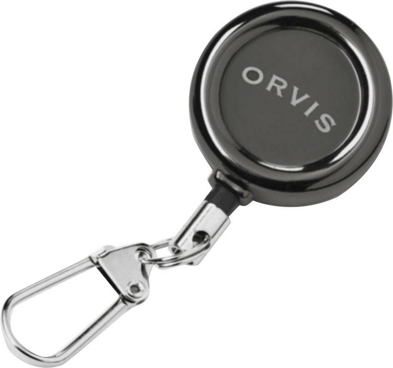 The Orvis Black Nickel Zinger – Pin-on features a black nickel finish and full metal construction. Built with a 22” wire cord, a rubber bumper, and a locking lobster clasp.