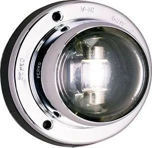 The Perko 0945DP0CHR Chromalex Vertical Mount Stern Light features a brass polished chromium-plated black plastic base with stainless steel screws for mounting. Certified with fig. 71 bulb, supplied with light.