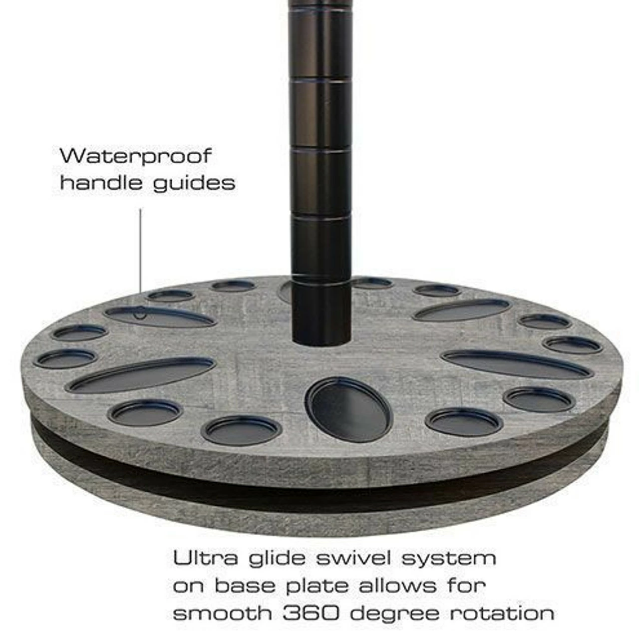 The Rush Creek Creations 24 Rod Spinning Storage Floor Racks help you make the most of your available space that you have for your fishing rods. It’s capable of securely holding up to 24 fishing rods. This fishing Rod storage floor rack has an Ultra-Glide Swivel system for smooth 360-degree rotation. Featuring soft rod clips that adjust to any rod taper to protect your equipment, plus 6 dual rod clips that can hold 2 freshwater rods or 1 saltwater rod up to 1.25 inches in diameter in the same clip. The essential rod rack for any angler.