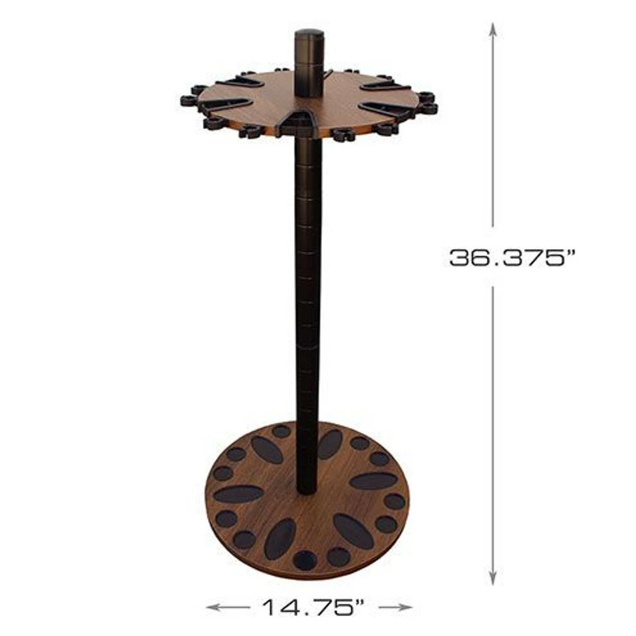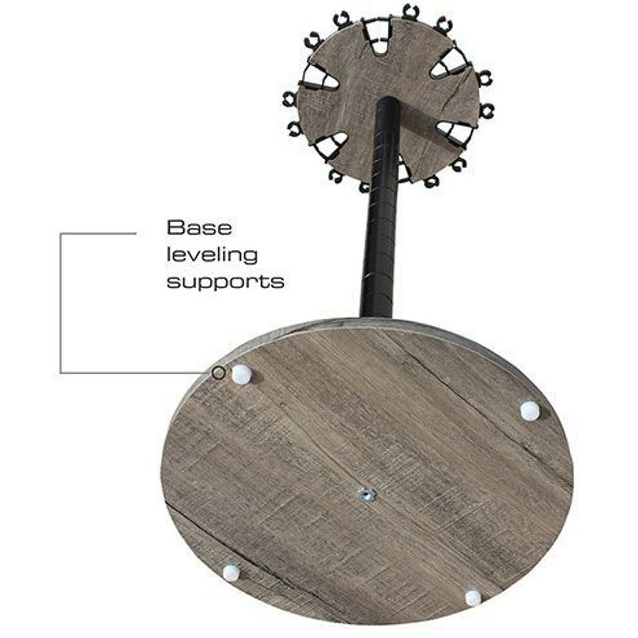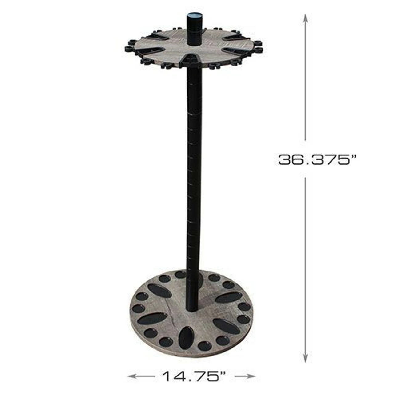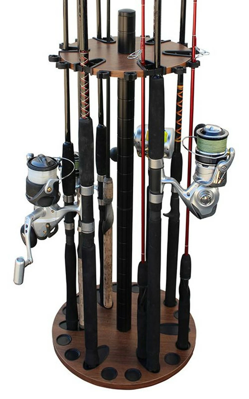 The Rush Creek Creations 24 Round Fishing Rod Storage Floor Rack comes with a 6” extension post. Most standard floor racks are 30” in overall height and are made for freshwater rod and reel combos. By adding the 6” extension post along with the dual rod clip technology, you can store those larger saltwater rods vertically on this fishing rod rack. The caps on the base plate capture any water from the rod or reels, the center post is 38mm (1.5”) in diameter and has been powder coated for durability and is scratch resistant.