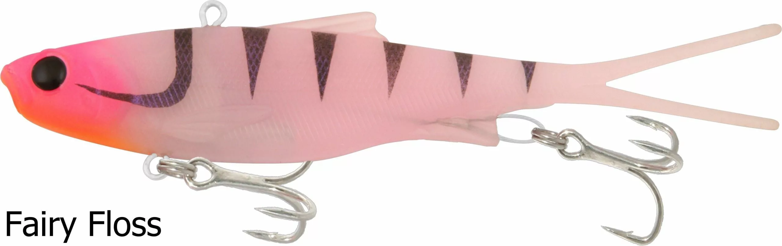 Brand new 150mm Samaki Vibelicious fish perfectly mimics the tight shimmer of a baitfish, luring in a variety of predator species. Samaki Vibelicious is constructed of 10X strong super stretch material, new VMC 4X strong spark point hooks and premium Japanese wire not to mention its available in over 14 amazing colours and unique sizes. Designed for speed, action and ultimate attraction whether it is for inshore reefs, coastal estuary fishing, freshwater impoundments or the Northern run-off the Vibelicious will be the stealthiest lure in your tackle box.Â