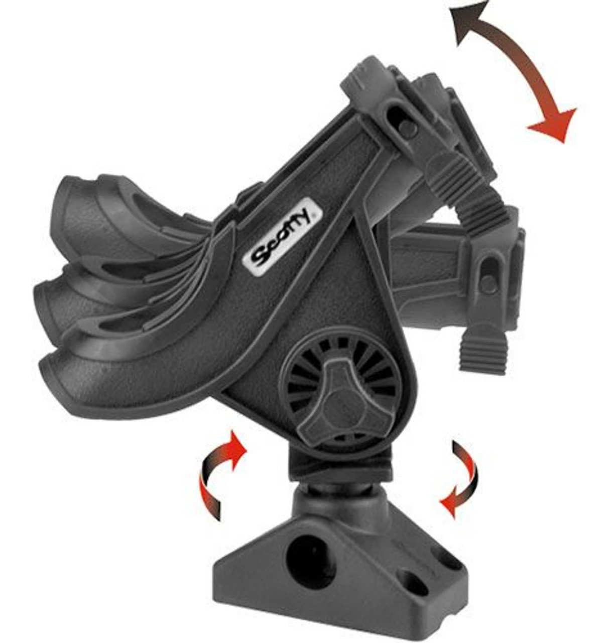 The Scotty Bait Caster/Spinning Rod Holder is designed to accommodate your bait caster or spinning reel. The Scotty Bait Caster/Spinning Rod Holder holds a bait caster reel in a cushioned cradle, or a slot in the front of the rod holder allows for a spinning reel to be securely held in position. The rod holder design has a side mounted flange, which leaves the bottom open. This allows for the rod holder to accommodate trigger grips. Pistol grip rod butts easily clear the sides of the rod holder for quick rod retrieval. Rod can be secured in holder with a soft latching strap which snaps over the top.