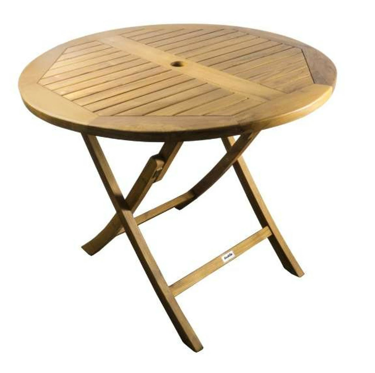 SeaTeak 60057 Gatsby Parabola Folding Table with an oiled finish is constructed with 100% solid teak. It is durable, resistant to water, mildew, and rot, making it a perfect bistro table for your deck or patio. This table comfortably fits a setting for four and features a cutout in the center for your umbrella.