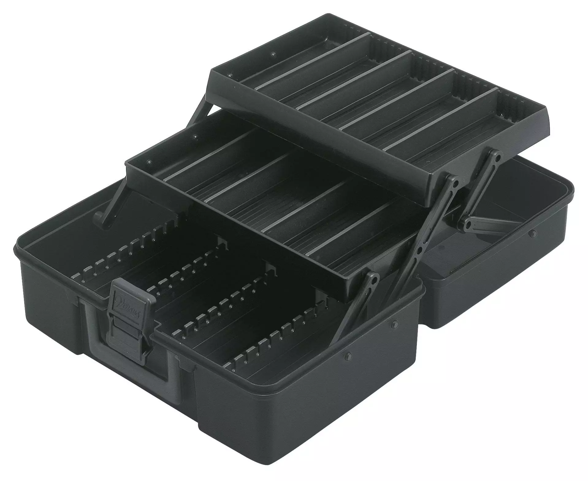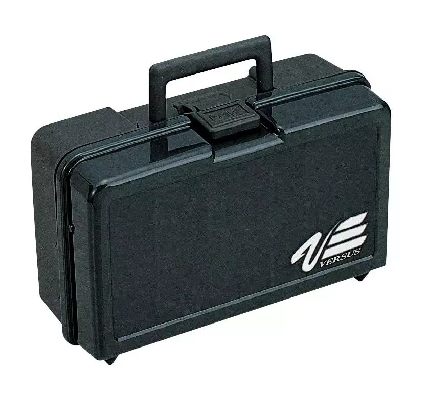 The Versus VS-7030 is premium plastic tackle box that is a must have for your next fishing trip. This large tackle box features two cantilever style trays for maximum storage possibilities. Each tray tier has 6 removable plastic dividers to make custom compartment sizes to fit any sized fishing tackle. The base of the tackle box also has 2 removable dividers with hooks slots for your large lures and rigs. Inside the lid is yet another storage area with 3 built in compartments for a quick grab section. This hinged lid tackle box also has a secure plastic flip latch that keeps the lid shut during transportation and a comfortable carrying handle so you can get it to the boat as easily as possible.Â