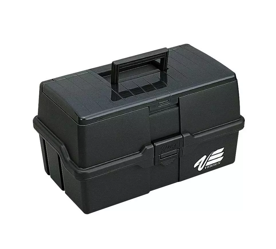 The Versus VS-7010 is premium plastic tackle box that is a must have for your next fishing trip. This large tackle box features two cantilever style trays for maximum storage possibilities. Each tray tier has 4 removable plastic dividers to make custom compartment sizes to fit any sized fishing tackle. The base of the tackle box also has 4 removable dividers with hooks slots for your large lures and rigs. This hinged lid tackle box also has a secure plastic flip latch that keeps the lid shut during transportation and a comfortable carrying handle so you can get it to the boat as easily as possible.Â