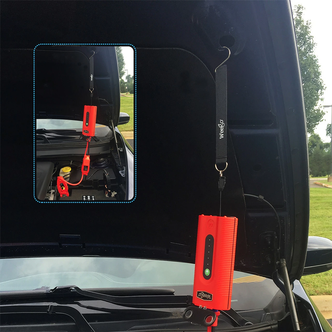 - Hook and lanyard suspends Weego from a vehicle?s hood to light the engine below or to use as a work or camping light